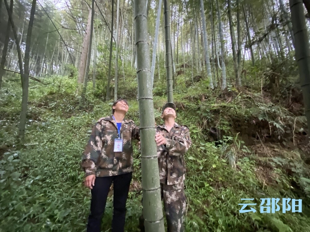徐德远(右)和王爱莲在查看竹子生长情况