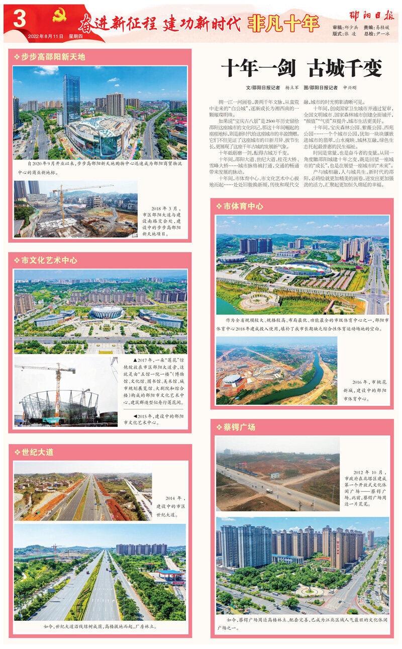 该摄影专版刊发于8月11日邵阳日报3版,是邵阳日报社献礼党的二十大“奋进新征程 建功新时代.非凡十年”主题系列专版之一。