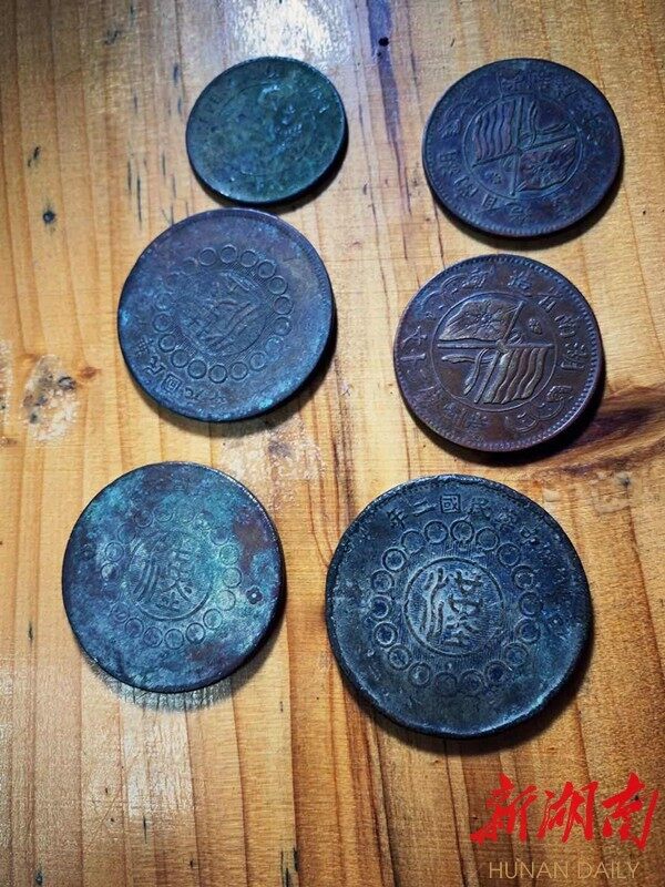 (杨芳显家保存的铜板,当年红军就是给他家留下这类铜板)